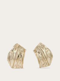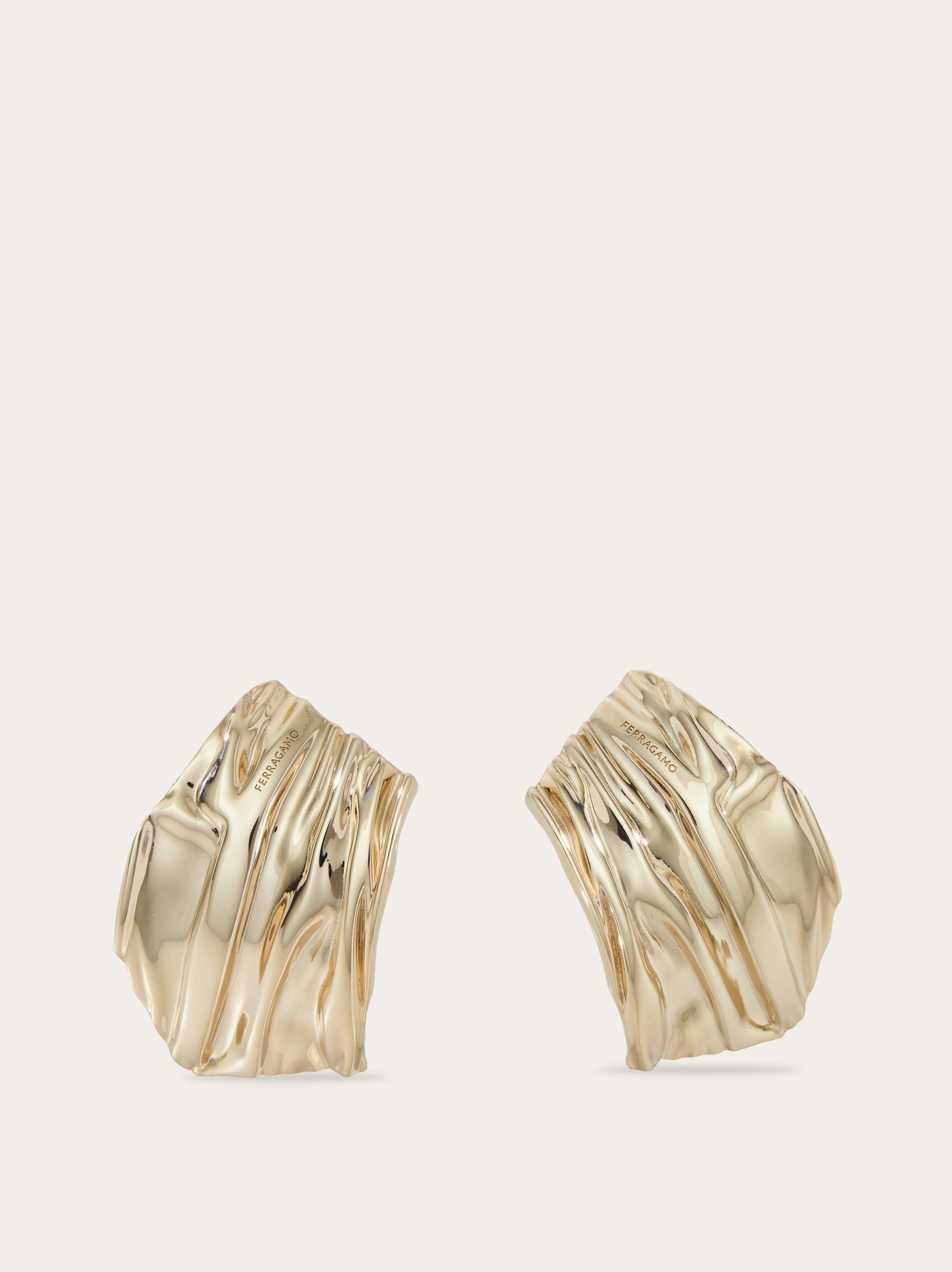 Earrings crafted from gold-finished brass, featuring a polished sheen and an asymmetrical design that plays between right and left. The sleek lines enhance the natural contours of the face, while the '80s-inspired design exudes retro elegance. Draped details evoke the tactile richness of fabric, elevated by artisanal finishes for a truly refined accessory. - Composition: brass - Made in ITALY - Product code: 760843 783324