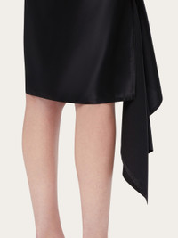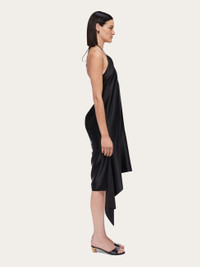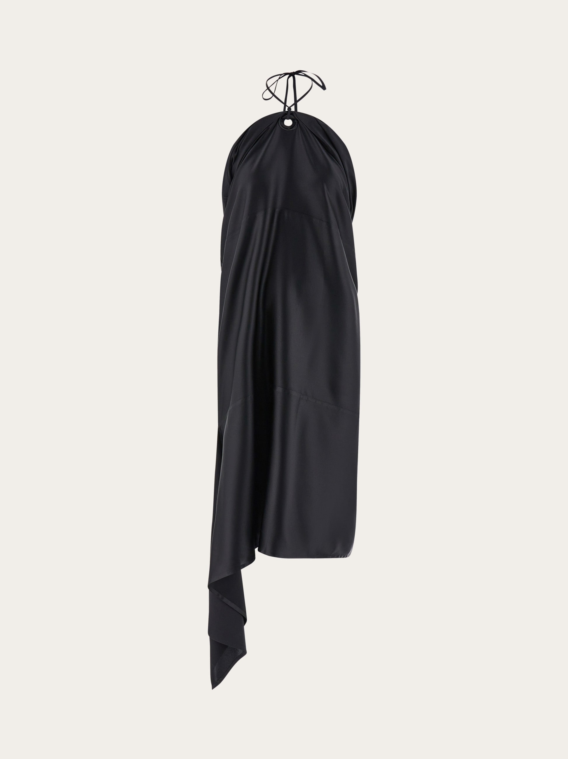 The drape of this silk dress is sensual and implies a natural glamor that seems almost effortless. With a halter neckline that leaves the shoulders bare, a slim ribbon threads through a leather loop where the fabric is gathered at the chest, and ties at the back of the neck. The right side drapes down to the ankle and strategic drapes confirm a sensual look that is perfect for cocktail hour. - Composition: 98% silk, 2% elastane - Made in ITALY - Product code: 13E887 775681