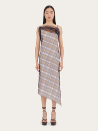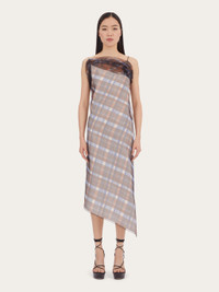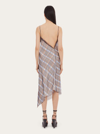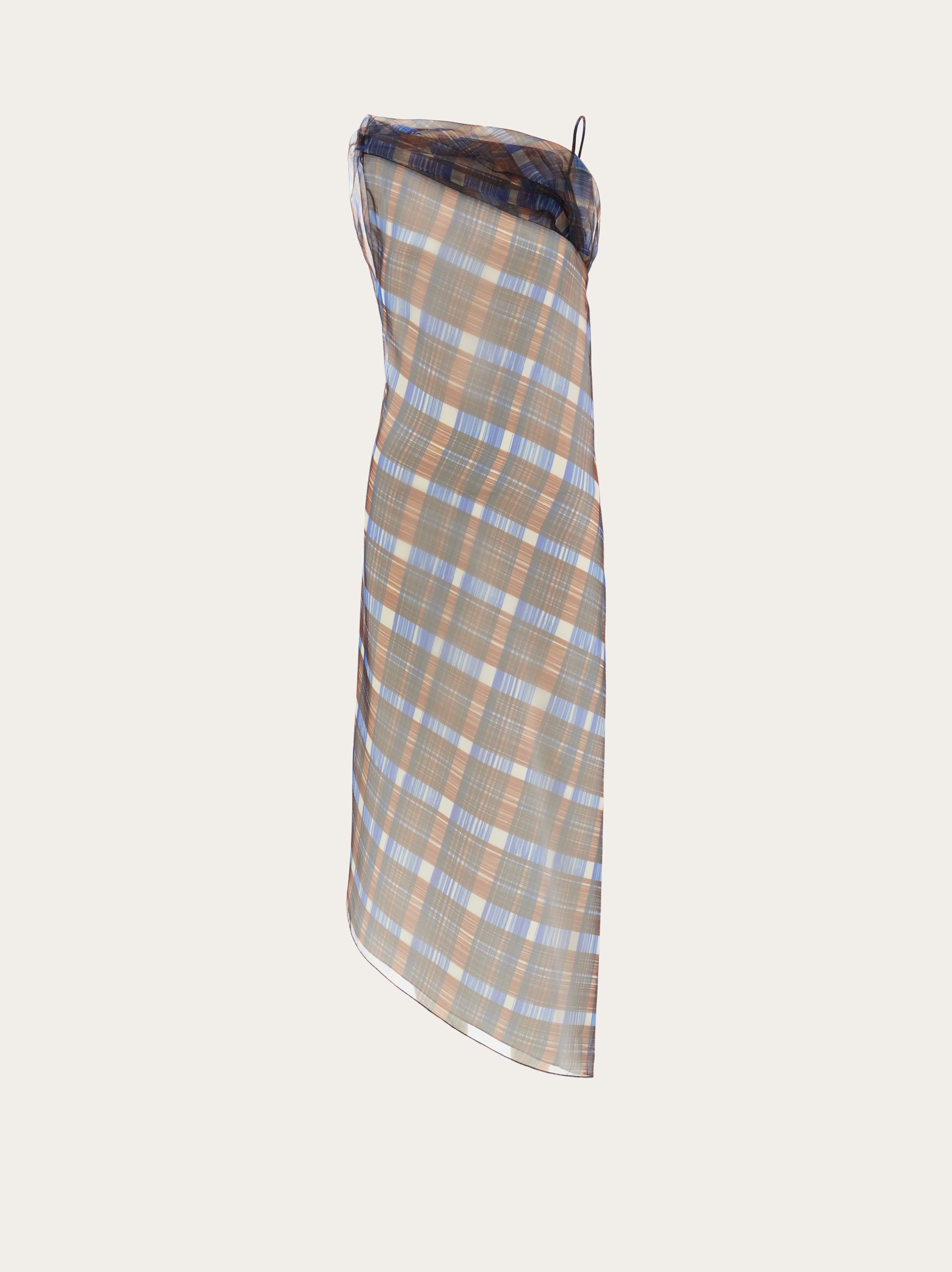 Made of double organza with a two-tone check print, this strappy dress is inspired by the motifs from the foulard collection. The diagonal cut of the neckline is echoed at the back, for a sensual, nude look. The entire garment is finished with an organza hem, which gathers softly at the chest. Model measurements: Height 5' 10½ "/179 cm; Bust 32½ "/82 cm; Waist 23"/58 cm; Hips 34½ "/88 cm Model wearing: 38 - Composition: 100% polyester - Product code: 13C576 765105 - Made in ITALY