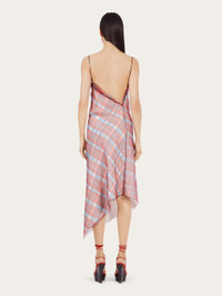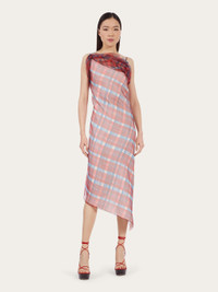 Made of double organza with a two-tone check print, this strappy dress is inspired by the motifs from the foulard collection. The diagonal cut of the neckline is echoed at the back, for a sensual, nude look. The entire garment is finished with an organza hem, which gathers softly at the chest. Model measurements: Height 5' 10½ "/179 cm; Bust 32½ "/82 cm; Waist 23"/58 cm; Hips 34½ "/88 cm Model wearing: 38 - Composition: 100% polyester - Product code: 13C576 765104 - Made in ITALY