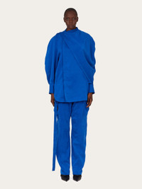 A true expression of modern femininity, this deconstructed shirt is cut from pure smooth lyocell. The strong silhouette features an asymmetrical wrap front with long sash that drapes from the shoulder. Pair with the matching cargo pants for the full impact. - Composition: 100% lyocell - Model measurements: Height 5' 10½ "/179 cm ; Bust 31½ "/80 cm; Waist 23½ "/60 cm; Hips 34½ "/88 cm - Model wearing: 38 - Made in ITALY - Product code: 13G800 782809