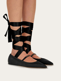 Pointed tips give this romantic ballet flat a contemporary feel. The silhouette is familiar, yet completely original, with an elasticated Mary Jane strap, and soft silky ribbon that laces up around the calf. Flexible and refined, the 'sacchetto' construction ensures a glove-like fit. - Composition: lambskin - Heel 2.0 cm - Made in ITALY - Product code: 01K219 782673