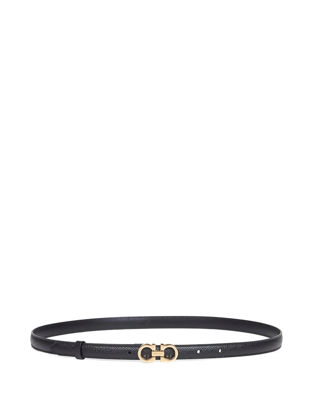 Gancini buckle leather belt Highlights - Black - Hammered finish - Adjustable gold-tone metal buckle - Engraved signature - 1.6 cm height - Calf leather Made in Italy Composition Calf Leather 100%