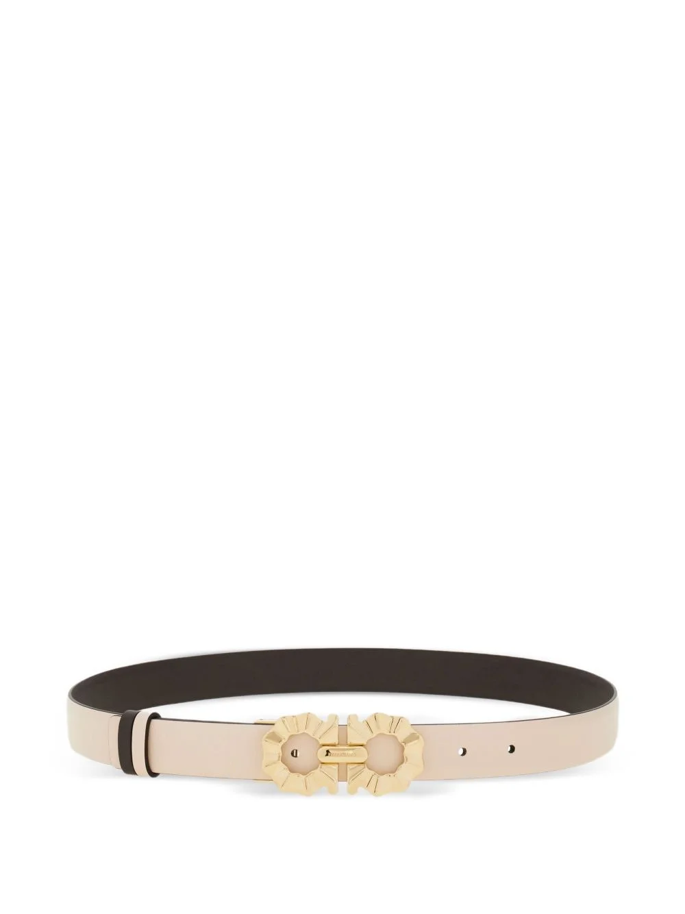 Gancini-buckle reversible belt Highlights - Ballet pink - Dark brown reverse side - Calfskin leather - Sculpted gancini buckle - Textured gancini buckle - Adjustable length Made in Italy Composition CALFSKIN 100%