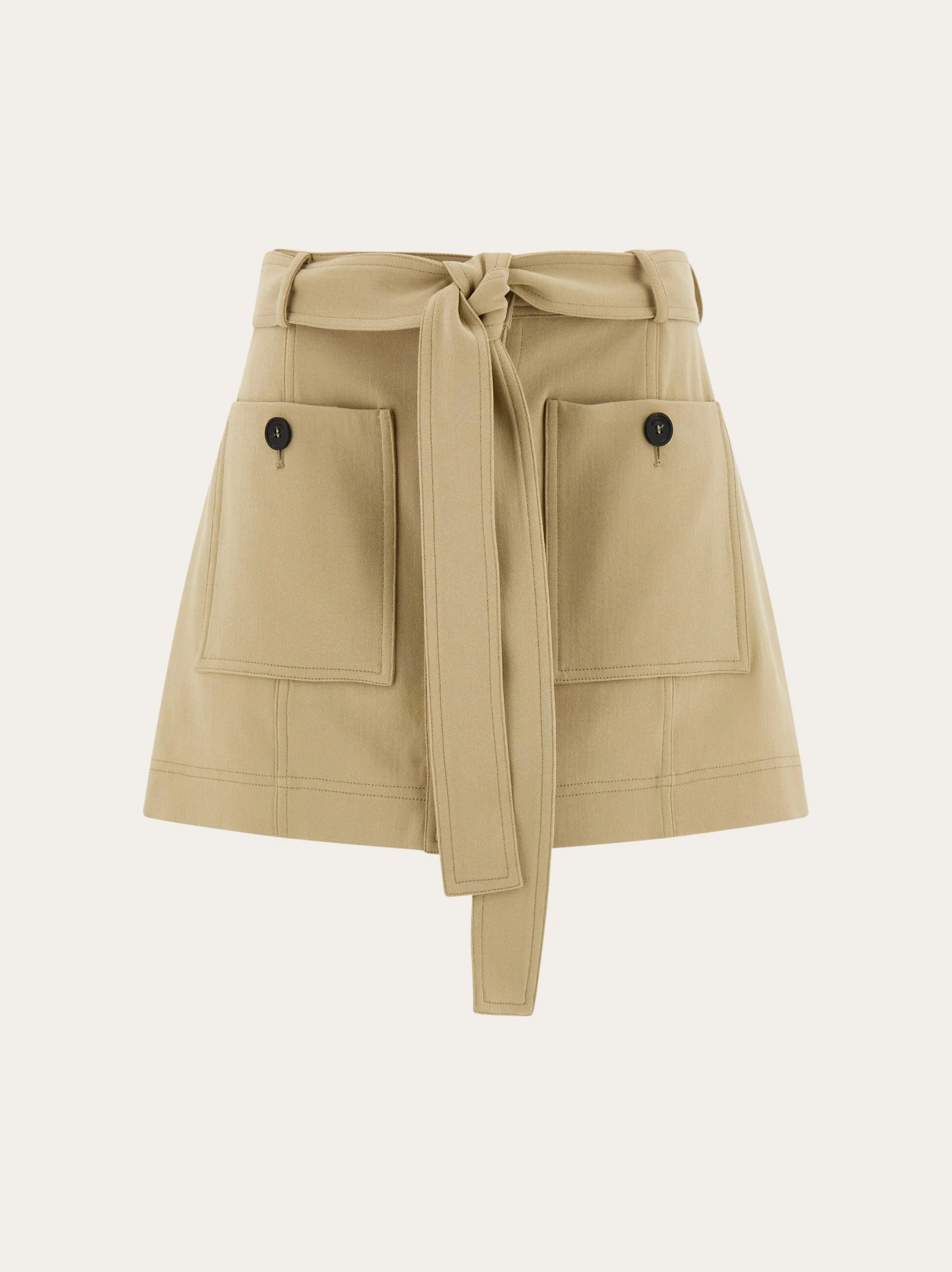 The large pockets and double stitching give this compact crepe skirt a utilitarian feel. With custom buttons, signature diagonal eyelets and a tonal belt, this piece is perfect for off duty style. - Composition: 63% cotton, 30% viscose, 7% silk - Model measurements: Height 5' 9"/175 cm; Bust 30"/76 cm; Waist 24"/61 cm; Hips 34½"/87 cm - Model wearing: 38/XS - Made in ITALY - Product code: 13H434 786392