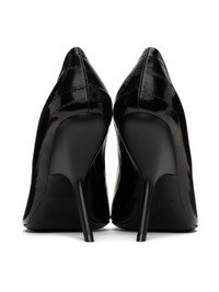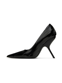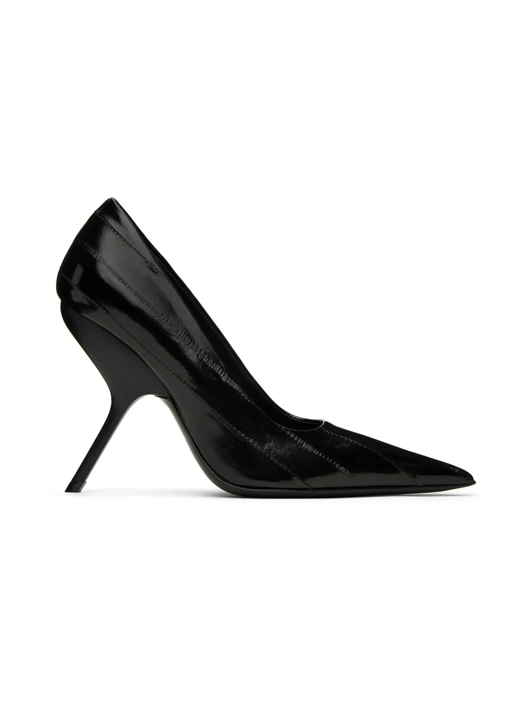 Paneled eelskin heels in black. · Pointed toe · Logo embossed at leather footbed · Grained eelskin lining · Modified acetate stiletto heel · Leather sole · Heel: H4 in Supplier color: Nero