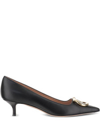 40mm Gancini pointed-toe pumps Highlights - Black - Leather upper - Pointed toe - Gold-tone gancini detail - Kitten heel - Slip-on style Made in Italy Composition Outer: Leather 100% Lining: Leather 100% Sole: Leather 100% SIZE & FIT Measurement HEEL 1.57 in(4 cm)