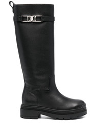 Vara Chain knee-high boots Vara Chain knee-high boots from Ferragamo. Made in Italy Composition Outer: Calf Leather 100% Sole: Rubber 100% Lining: Fabric 100% SIZE & FIT Measurement CIRCUMFERENCE 15.74 in(40 cm) HEEL 1.96 in(5 cm) HEIGHT 15.35 in(39 cm) Sole height 1.37 in(3.5 cm)