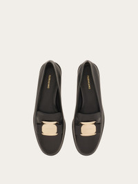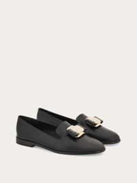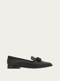 Simple and refined, this patent leather loafer is a statement shoe for its nonchalant sophistication. Featuring a soft leather padded insole, the upper has a slightly squared tip with a tonal leather bow that slides through the new Ferragamo buckle in a gold tone. The perfect balance of masculine inspiration with feminine flair. - Composition: kid leather - Made in ITALY - Product code: 01H522 779200