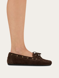 Casual and luxurious with a high fashion flair, this new boat shoe is off duty chic at its best. The textbook threaded leather laces are embellished with a golden F charm at the tip. The inner fussbett assures maximum comfort. - Composition: nappa suede - Made in ITALY - Product code: 01L088 790567