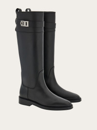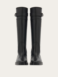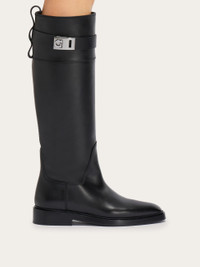 Knee-high boots with an equestrian-inspired aesthetic. The square toe and the chunky leather sole define the bold aesthetic, while the strap with Gancini buckle on the leg add an iconic edge. - Composition: calfskin - Made in ITALY - Product code: 01G205 764001