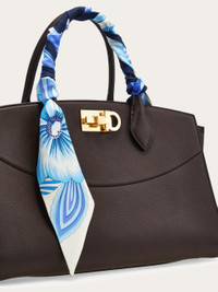 A most versatile accessory, the silk bandeau can be worn in your hair, around your neck, as a belt, or used to decorate your bag; the options are endless! This iteration is decorated with the Brezza motif. - length 55.1 IN width 2.7 IN - Composition: 100% silk - Made in ITALY - Product code: 321247 789965