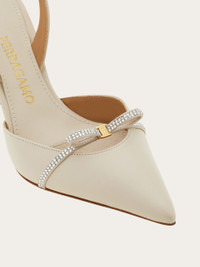 Sleek and sensual with an air of serious luxury, this Ferragamo slingback is the perfect marriage of contemporary glamour and old school romance. The patent nappa leather draws an elongated tip, topped with a crystal embellished bow and golden Vara buckle. - Composition: nappa - Made in ITALY - Product code: 01K214 784240