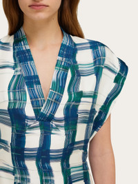 Textbook easy chic. The stylized tartan print on this sleeveless dress is a series of fluid brush strokes that enhance the soft swish of the fabric. A feminine silhouette with a directional feel, the cut features wide capped sleeves and a deep V-neck, with an asymmetric handkerchief hem and concealed back zip. - Composition: 100% organic silk - Model measurements: Height 5' 10"/178 cm; Bust 32 / 81cm; Waist 25"/63 cm; Hips 34½"/88 cm - Model wearing: 38/XS - Made in ITALY - Product code: 13H425 785792
