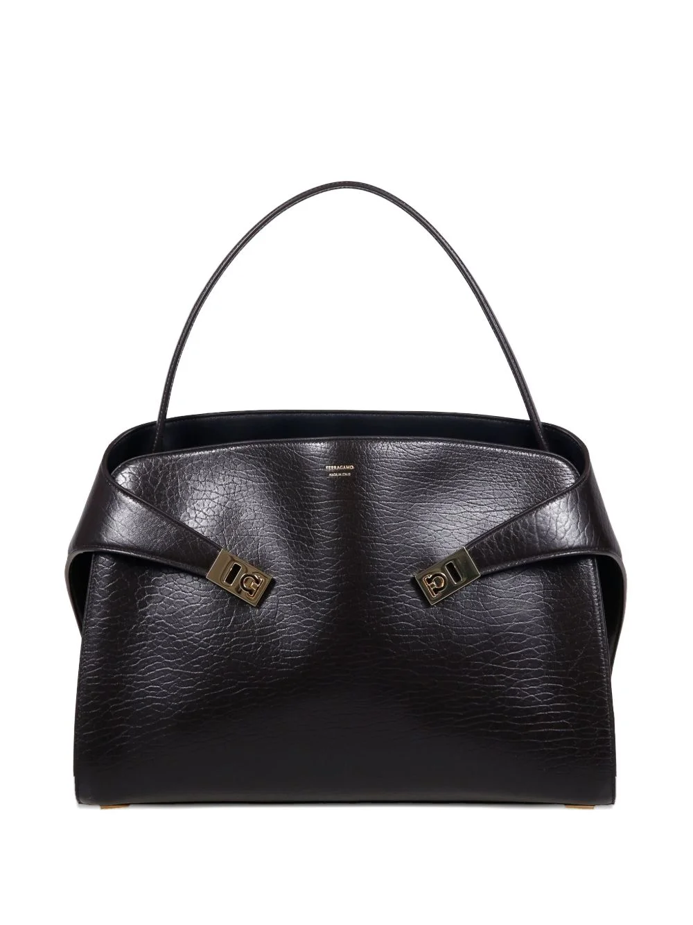 buckled leather shoulder bag Highlights - Brown - Top handle - Buckle detail - Gold-tone hardware - Internal slip pocket Made in Italy Composition Outer: CALFSKIN 100% SIZE & FIT Measurement DEPTH 6.1 in(15.5 cm) HANDLE 6.49 in(16.5 cm) HEIGHT 12 in(30.5 cm) WIDTH 15.74 in(40 cm)