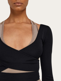 Cache-Coeur: to hide the heart. This ballet-inspired top is made from a compact matte viscose knit. The wrap construction echoes a feminine elegance with a contemporary twist. - Composition: 100% viscose - Made in ITALY - Product code: 113442 782986