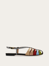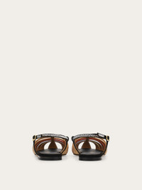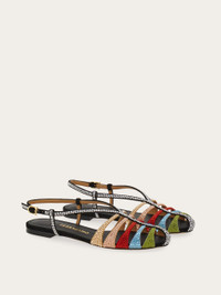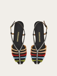 Inspired by the iconic Rainbow shoe, this new flat sandal is a must for elegant looks with a distinctive personality. The cage construction and soft suede upper are complemented by an array of hand-applied micro crystals. It features a flat sole, rubber heel and side buckle with an elongated Gancini. - Composition: calfskin suede and crystals - Made in ITALY - Product code: 01L037 790205