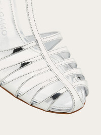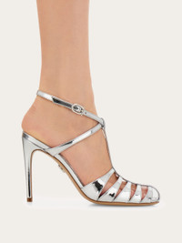 Cut from laminated calfskin with a metallic glow, this stiletto sandal was designed with old school glamour in mind. Inspired by the iconic Rainbow shoe, this contemporary iteration is an absolute show stopper, with a slim, sky high heel and delicate ankle strap complete with Gancio buckle. - Composition: laminated calfskin - Made in ITALY - Product code: 01L038 790131