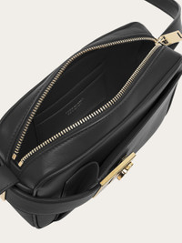 Original and snappy, this chic compact camera case is full of contemporary charm with unique features. On the front, a folding pocket is sealed by a strap that wraps from the back with Gancio clasp, while the top zip opening reveals a fully organized interior. Featuring a tonal piping around the edge, the soft calf leather is sumptuous and luxurious. Adjustable shoulder strap. - height 13.0 CM / 5.1 IN length 24.0 CM / 9.4 IN width 7.0 CM / 2.7 IN - Composition: calfskin - Product code: 216292 769547 - Made in ITALY