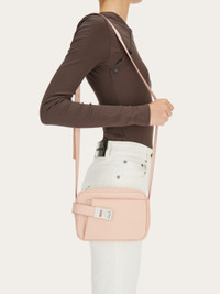 Original and snappy, this chic compact camera case is full of contemporary charm with unique features. On the front, a folding pocket is sealed by a strap that wraps from the back with Gancio clasp, while the top zip opening reveals a fully organized interior. Featuring a tonal piping around the edge, the soft calf leather is sumptuous and luxurious. Adjustable shoulder strap. - height 5.1 IN length 9.4 IN width 2.7 IN - Composition: calfskin - Made in ITALY - Product code: 216292 769549