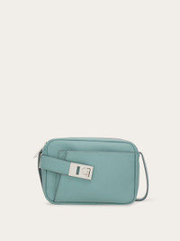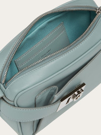 Original and snappy, this chic compact camera case is full of contemporary charm with unique features. On the front, a folding pocket is sealed by a strap that wraps from the back with Gancio clasp, while the top zip opening reveals a fully organized interior. Featuring a tonal piping around the edge, the soft calf leather is sumptuous and luxurious. Adjustable shoulder strap. - height 5.1 IN length 9.4 IN width 2.7 IN - Composition: calfskin - Made in ITALY - Product code: 216292 769551