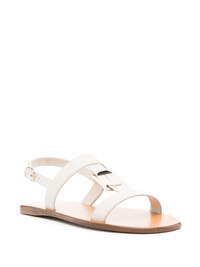 Capri leathers sandals Highlights - Ivory white - Calf leather - Almond open toe - T-bar strap - Logo-engraved buckle - Branded leather insole - Flat leather sole - Buckle-fastening slingback strap Made in Italy Composition Lining: Calf Leather 100% Outer: Calf Leather 100% Sole: Calf Leather 100% SIZE & FIT Measurement HEEL 0.39 in(1 cm) HEIGHT 2.36 in(6 cm)