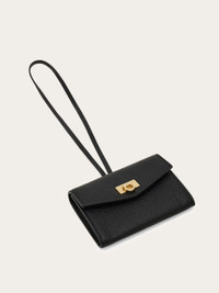 A chic little charm in grained calfskin, doubling as a sleek cardholder and finished with a gold-tone Gancini buckle. Clip it onto your favorite bag for a stylish, personal touch. - height 2.9 IN length 4.3 IN width 0.7 IN - Composition: hammered calfskin - Made in ITALY - Product code: 220979 785951