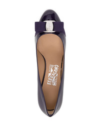 Carla 70 pumps dark purple patent leather signature Vara bow detail almond toe slip-on style 70mm heel mid heel branded insole leather sole Made in Italy Composition Outer: Patent Leather 100% Lining: Leather 100% Sole: Leather 100% SIZE & FIT Measurement HEEL 2.75 in(7 cm) Washing instructions Read Manufacturer Guidelines
