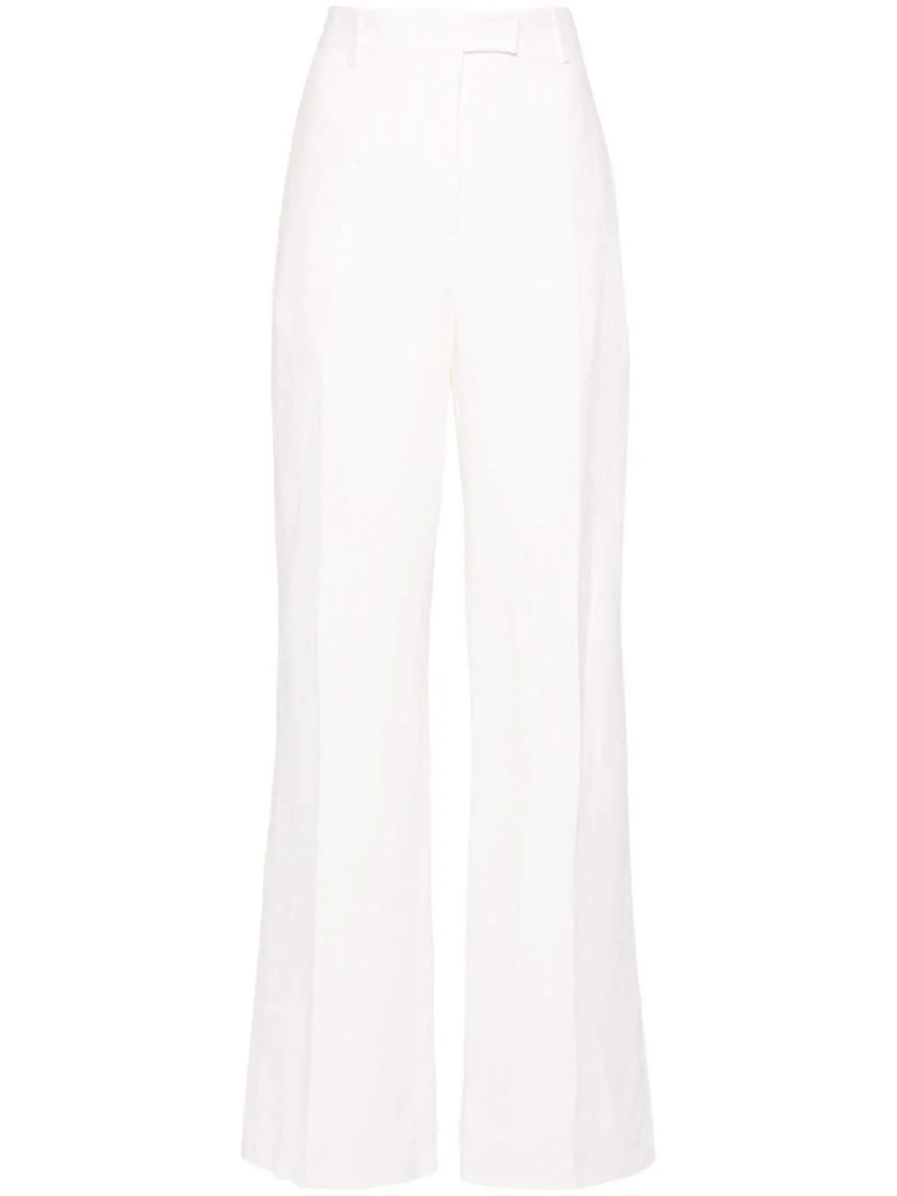 chambray straight trousers Highlights - White - Chambray - Belt loops at the waist - Pressed crease - Straight leg - Rear welt pocket - Straight leg - Concealed front button, hook and zip fastening Made in Italy Composition Outer: Viscose 54%, Linen/Flax 46% Lining: Cotton 100% SIZE & FIT Model measurements Height 5 ft 11 in(1.8 m) Bust/Chest 31.49 in(80 cm) Hips 35.82 in(91 cm) Waist 24.8 in(63 cm) FittingInformation Designed for a straight-leg fit, these trousers allow for a close fit at the waist and an unrestricted, comfortable fit over the leg Made from a midweight non-stretch fabric This piece fits true to size – take your usual size