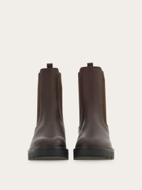 A winter classic with a high end feel, this Ferragamo Chelsea boot is made of the softest kid leather with a natural grain. The ultra-light rubber sole has a chunky tread which provides excellent grip as well as adding a gritty twist to this uptown classic. The elastic ankle inserts feature the Ferragamo monogram for an iconic finish. - Composition: kid leather - Made in ITALY - Product code: 01J253 779831