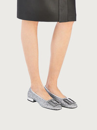 Steppin' out! These brilliant, bright slip-ons are part of the dance capsule collection. A true burst of glamour, they sparkle with every step. The super comfortable shape envelops the foot for a snug fit that means you won’t have to leave the dancefloor! The rounded toe is decorated with a burnished metal buckle and a contrasting square neckline for a truly modern look. Silver laminated nappa piping completes the look with a modern twist. - Heel 1,5 cm - Composition: glitter fabric and laminated nappa - Made In ITALY