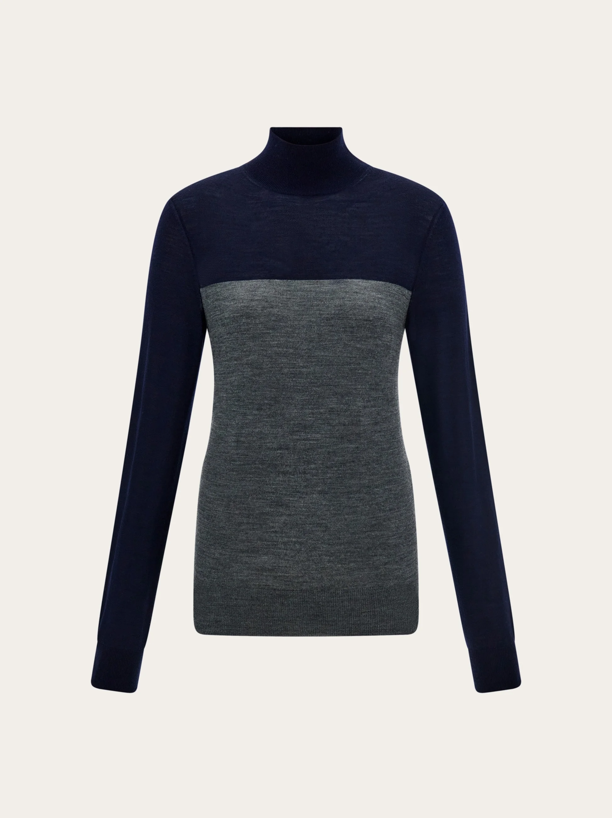 The savvy use of color blocking echoes the feminine shape of this pure wool turtleneck. With an extra-fine weave and smooth handfeel, the shoulders are highlighted gracefully and ribbed knit trims complete the design. - Composition: 100% pure virgin wool - Made in ITALY - Product code: 13H873 790868