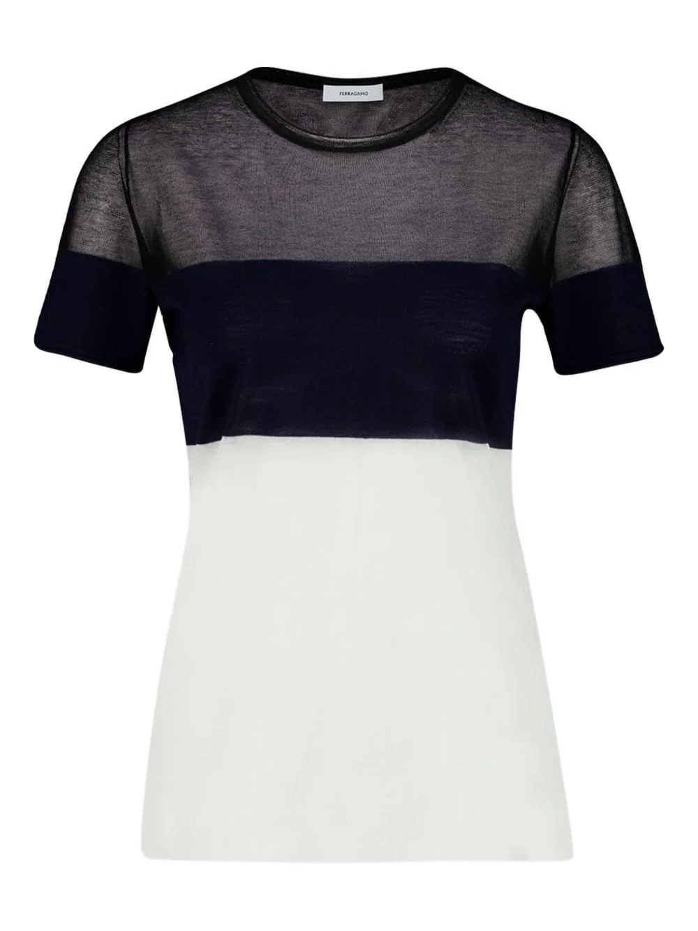 colourblock round-neck sweater Highlights - White - Colourblock design - Round neck - Short sleeves - Knitted construction - Semi sheer panel Made in Italy Composition Wool 47%, Cotton 43%, Polyamide 10% Washing instructions Read Manufacturer Guidelines