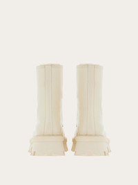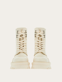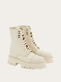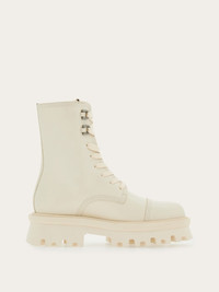 Bold combat boots: the round toe is defined by a cup toe with triple topstitching, while the lacing is complemented by double Gancini eyelets with metal finish. Chunky sole with protruding welt and contoured profile, completed by the lug tread. - Heel 2 cm - Composition: calfskin - Made In ITALY