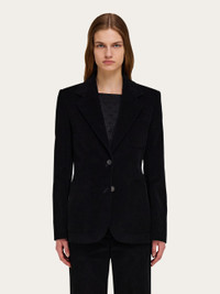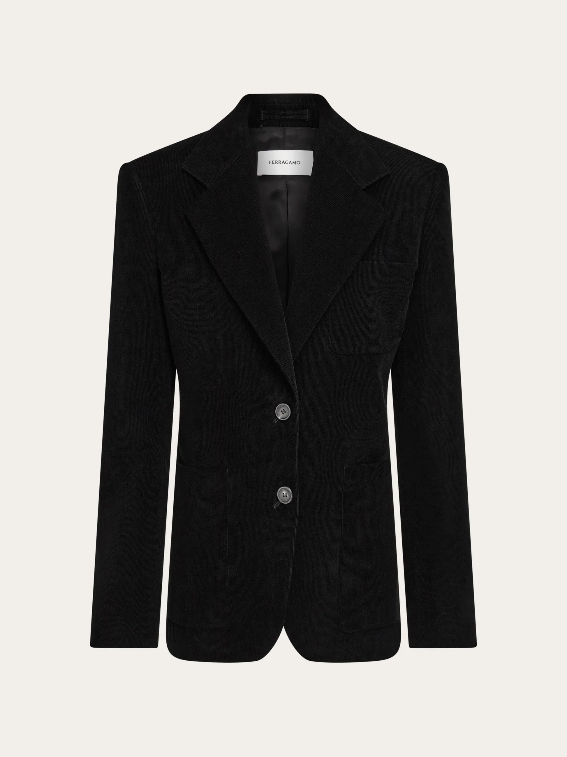 Seventies inspired single breasted blazer cut from the softest corduroy. The current aesthetic is enhanced by a sporty cut, with patch pockets and a longer length, with double back vents and button up cuffs. - Composition: 98% cotton, 2% elastane - Model measurements: Height 5' 10"/178 cm; Bust 32 / 81cm; Waist 25"/63 cm; Hips 34½"/88 cm - Model wearing: 38/XS - Made in ITALY - Product code: 13H325 785344