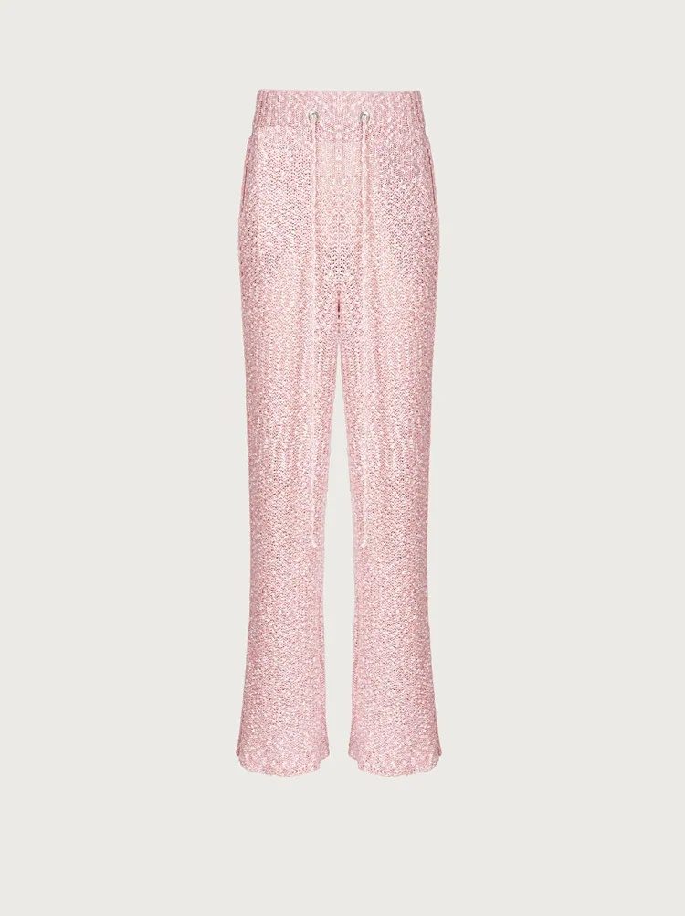 Light and breezy cotton bouclé knitted trouser, perfect for casual-chic style on warm summer days. The wide, straight leg confirms a contemporary feel. Pair with the matching top for sophisticated style. Model measurements: Height 5' 11"/180 cm; Bust 31½"/79.5 cm; Waist 23½"/60 cm, Hips 34½"/87 cm - Composition: 100% cotton - Made In ITALY