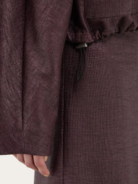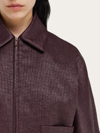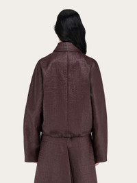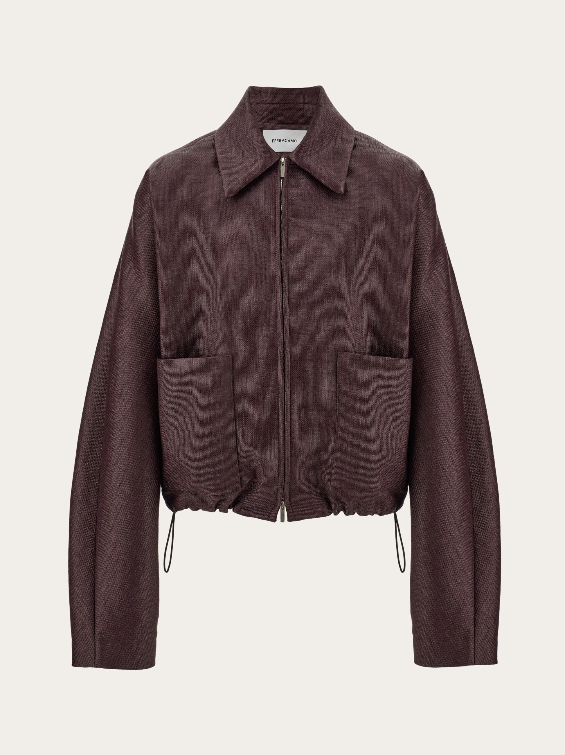 Tailoring elements and an urban attitude characterize this new cropped bomber jacket. Cut from a cotton blend with raffia-like finish, the sophisticated texture has a clean silhouette, with pointed collar, rounded shoulder, and kimono cut sleeves. Along the front, a double slider zip with custom puller is accompanied by a custom drawstring at the bottom hem. Pair with the matching trousers for the complete look. - Composition: 56% cotton, 44% polyamide - Model measurements: Height 5' 10"/178 cm; Bust 31½ "/80 cm; Waist 23½"/60 cm; Hips 34 "/88 cm - Model wearing: 38 - Made in ITALY - Product code: 13G362 780801