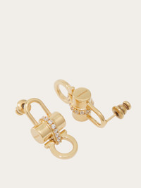 These mini stud earrings are inspired by the bags collection. A mini Gancio silhouette hangs from a tiny crystal embellished padlock. - Composition: brass and crystals - Made in ITALY - Product code: 760878 785437