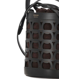 cut-out bucket bag Highlights - Black - Calf leather - Circular cut-outs - Brown suede lining - Top handle - Detachable shoulder strap Made in Italy Composition Outer: Calf Leather 100% Lining: Lambskin 100%, Fabric 100% SIZE & FIT Measurement DEPTH 9.05 in(23 cm) HEIGHT 7.08 in(18 cm) STRAP 5.51 in(14 cm) WIDTH 3.93 in(10 cm)
