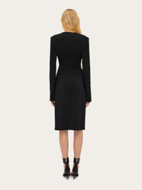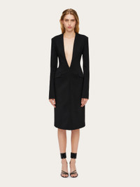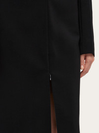 Stretch double wool coat dress with a deep V neck. Darts created a fitted silhouette enhanced by the long sleeves with ironed crease for a sleek finish. The slit with hidden zip on the front allows you to adjust the width and change from a business-like look to a more glam appeal. The garment is lined, and fastens at the back via a hidden zip with hook and eye. Model measurements: Height 5' 10"/178 cm; Bust 31½ "/80 cm; Waist 23½"/60 cm; Hips 34 "/88 cm Model wearing: 38 - Composition: 93% pure virgin wool, 4% elastane, 3% polyamide - Product code: 13C868 773293 - Made in ITALY