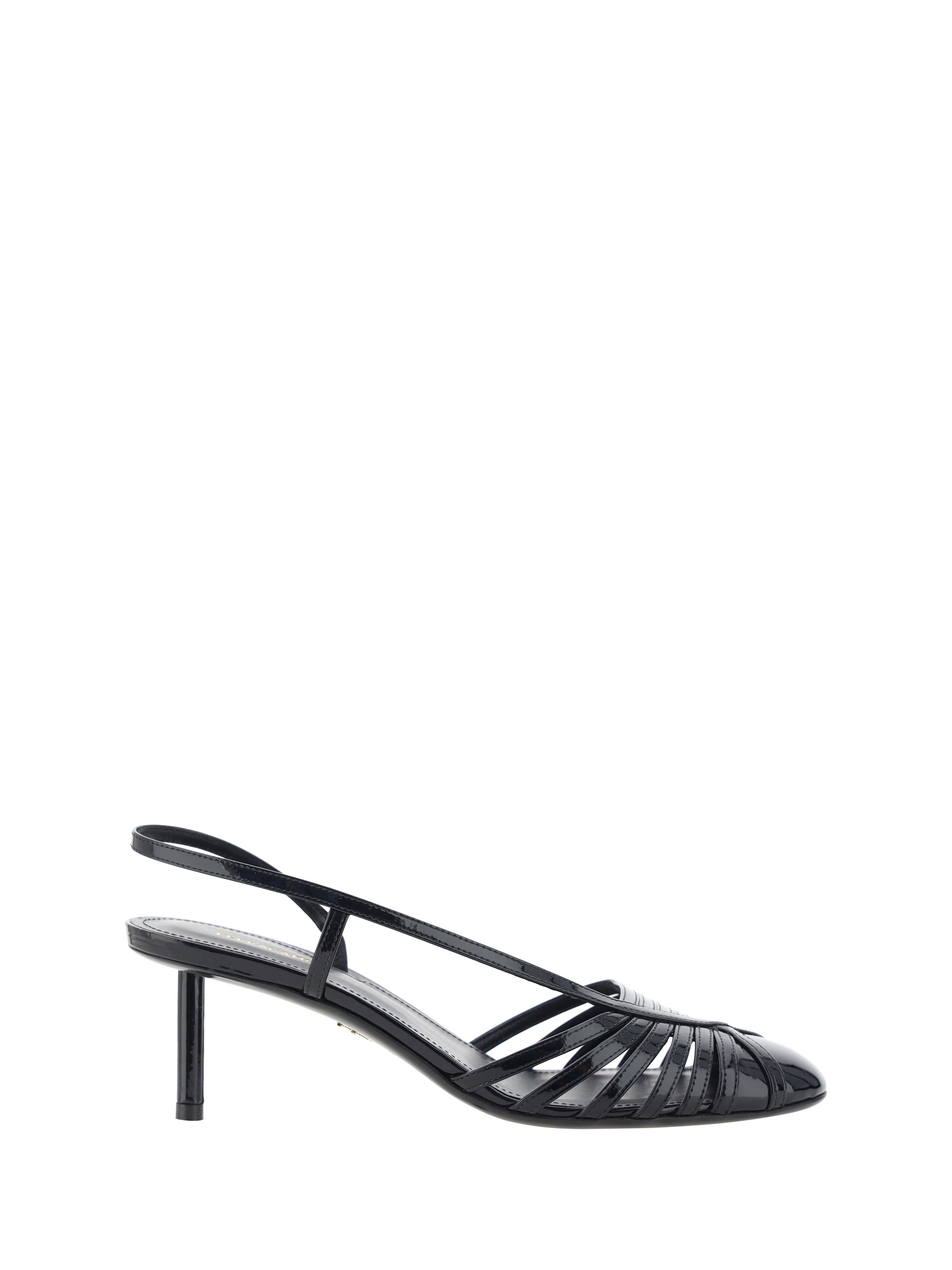 Leather Detailed Pumps by Ferragamo, almond toe, upper from hand-stitched thin patent leather straps, patent leather stiletto heel. DETAILS sku 777238_001 composition: CALF LEATHER BOS TAURUS 100% color group: BLACK gender: WOMAN season: AW24 size chart: SHOES US category name: PUMPS dimensions: 4 cm