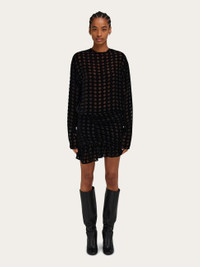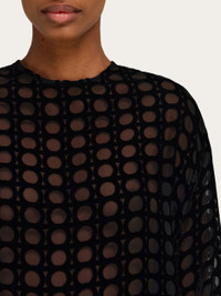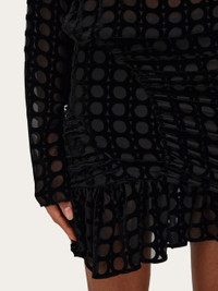 Devore accents bring an urban edge to the sophisticated cut of this mini dress. The soft velvet is strategically dissolved to create semi-transparent circles for a sensual appeal echoed by the deep slit at the back, while the balloon silhouette of the skirt adds a playful note. - Composition: 82% silk, 18% viscose - Model measurements: Height 5' 9"/175 cm; Bust 30"/76 cm; Waist 24"/61 cm; Hips 34½"/87 cm - Model wearing: 38/XS - Made in ITALY - Product code: 13G963 782885