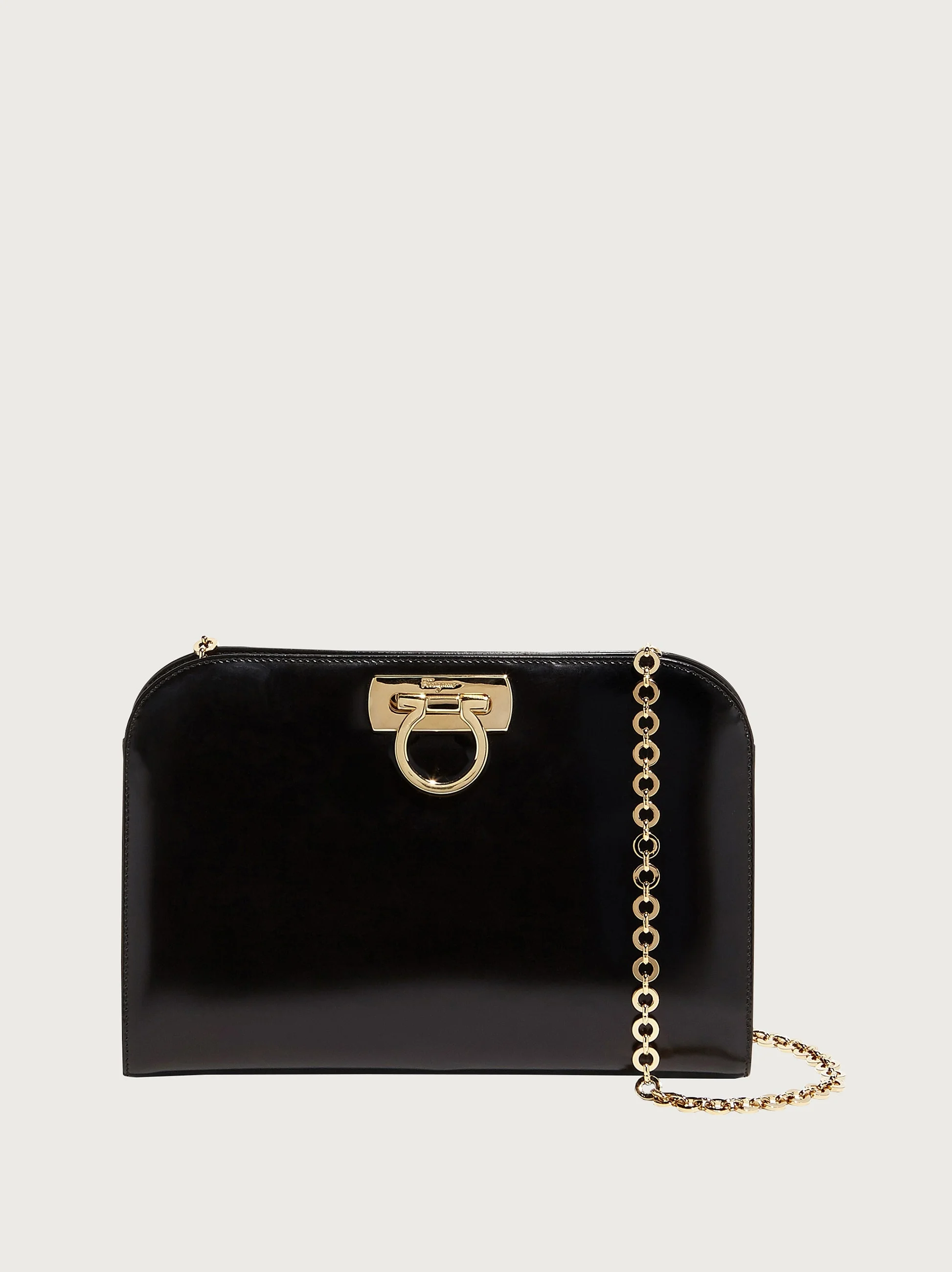 Clutch in brushed-off calfskin with Gancini clasp.This bag is the re-release of a popular Salvatore Ferragamo bag created in 1990 for Lady Diana Spencer, Princess of Wales. - A) Height 7.2 IN B) Length 11.0 IN C) Width 2.5 IN - Composition: brushed-off calfskin - Made in ITALY - Product code: 210587 560469