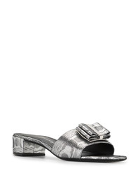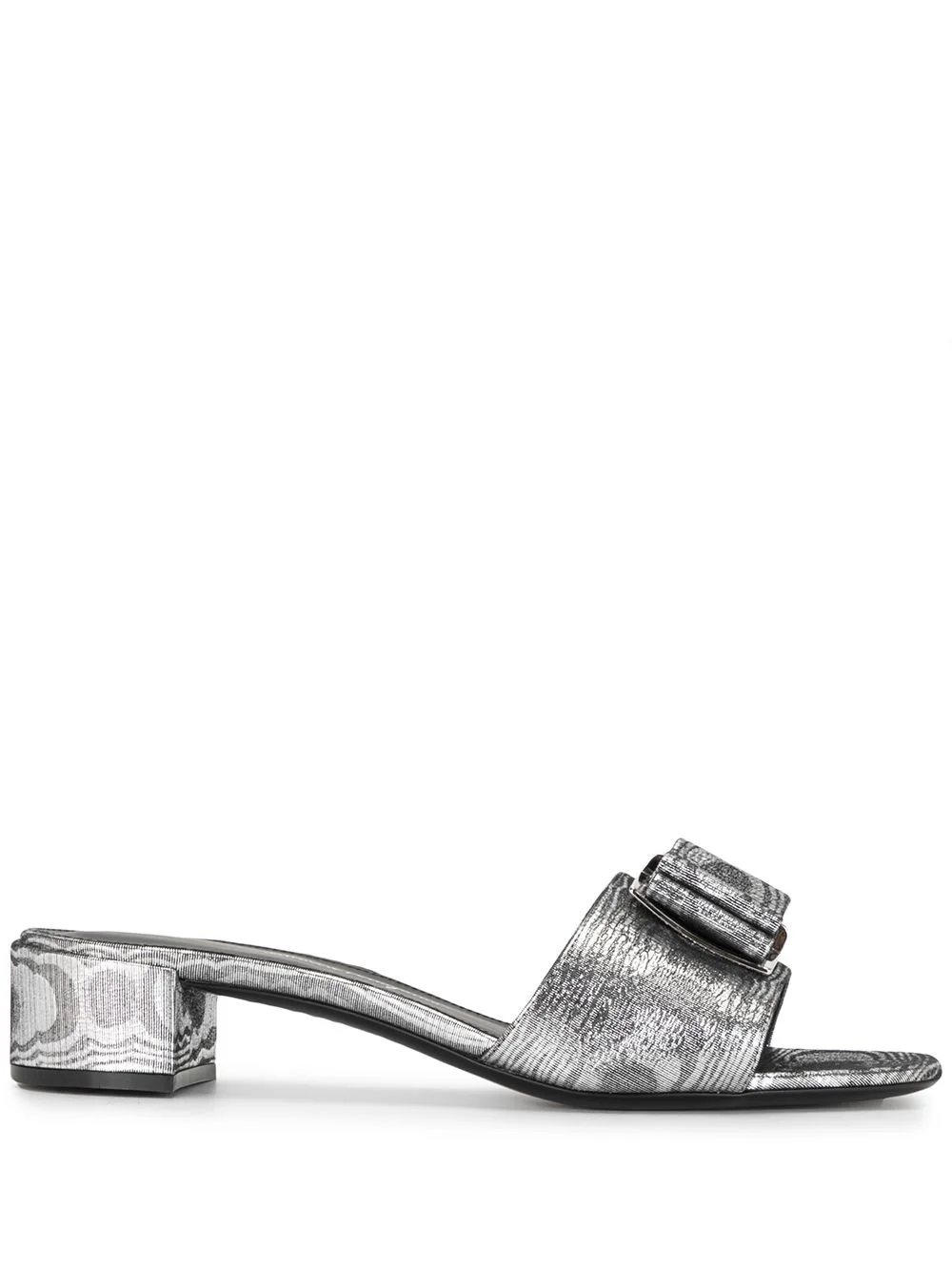Double Bow 30mm sandals Step into pure elegance with Salvatore Ferragamo. These Double Bow sandals sit atop a low heel for an understated look. Pedicures at the ready. Highlights - Silver-tone - Goat suede - Bow detailing - Slip-on style - Open toe - Square toe - Branded insole - 30mm low-block heel Made in Italy Composition Outer: Goat Skin 100% SIZE & FIT Measurement HEEL 1.96 in(5 cm) Sole height 0.78 in(2 cm)