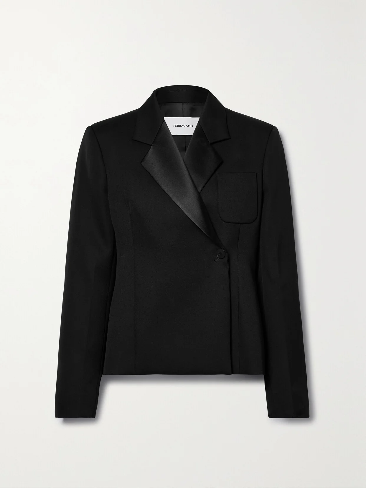 Double-breasted Satin-trimmed Grain De Poudre Wool Blazer