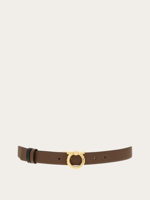 The mini golden Gancini loop adds a playful twist to this Ferragamo belt. Made of soft calfskin with a natural grainy finish, it has a golden square buckle with rounded edges. The 2.5cm width confirms an elegant appeal. - height 0.9 IN - Composition: calfskin - Made in ITALY - Product code: 230346 780417