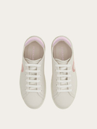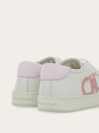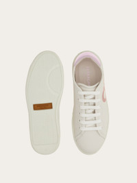 Nineties inspired lace up sneaker with clean lines and cool details. The soft leather upper features a 3D printed Gancio on the side whose color matches the heel tab. Inside, the lining is decorated with a custom Ferragamo pattern, and the ultra-light rubber sole has a custom tread featuring the iconic Gancio outline. - Composition: calfskin - Made in ITALY - Product code: 030676 780982