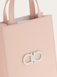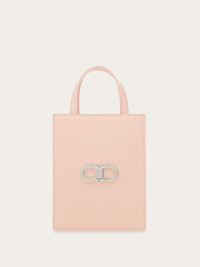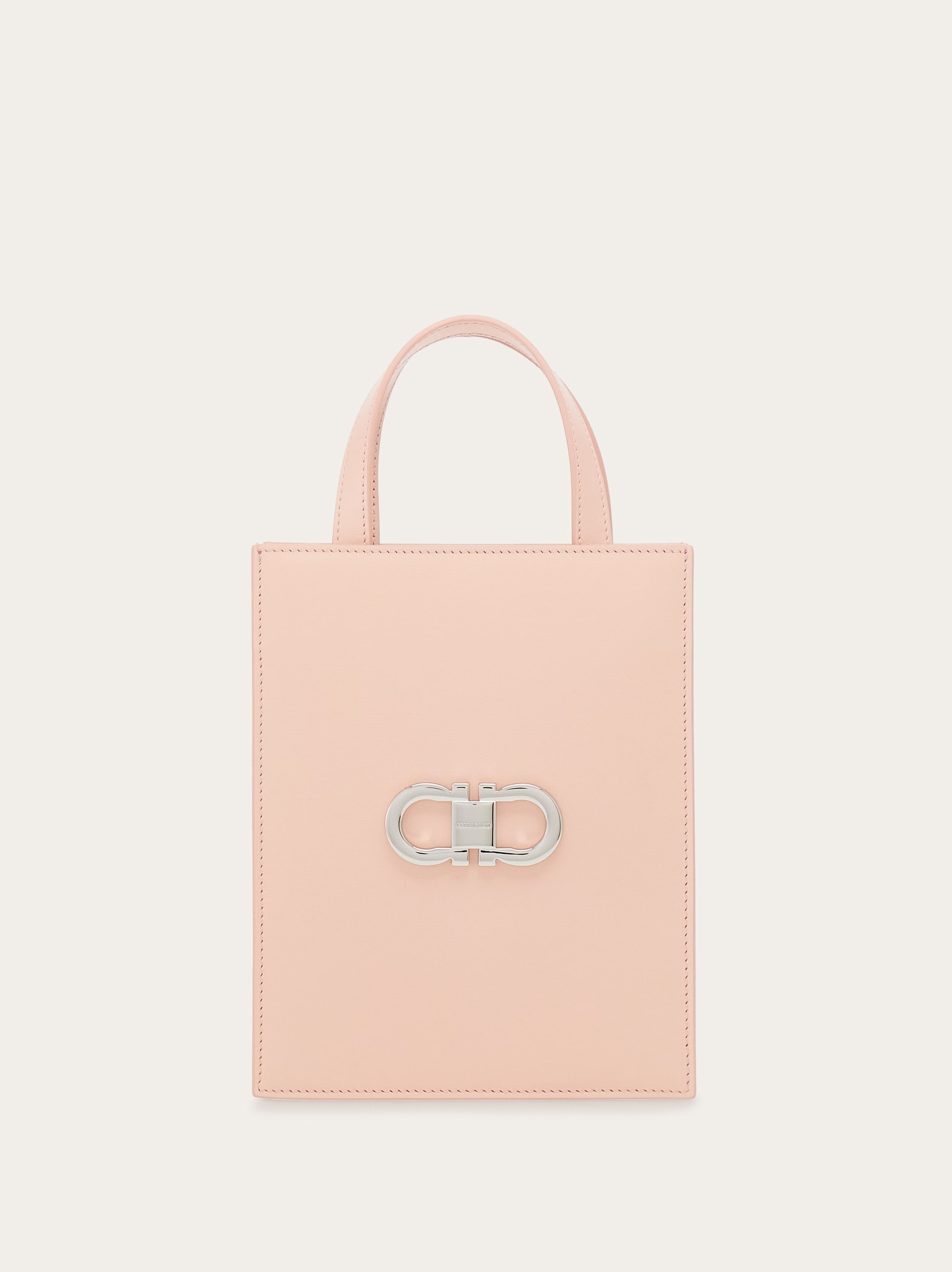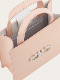 The quiet strength of this compact tote is echoed by the palmellato leather, with its unique texture and luxurious feel. Punctuated by a golden Gancio on the front, it has a bridge and magnet clasp and short top handle. The contrasting interior is leather lined and has slots for cards and documents. Removable shoulder strap for hands free style. - height 7.8 IN length 6.2 IN width 2.5 IN - Composition: palmellato calfskin - Made in ITALY - Product code: 218358 771813