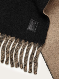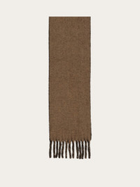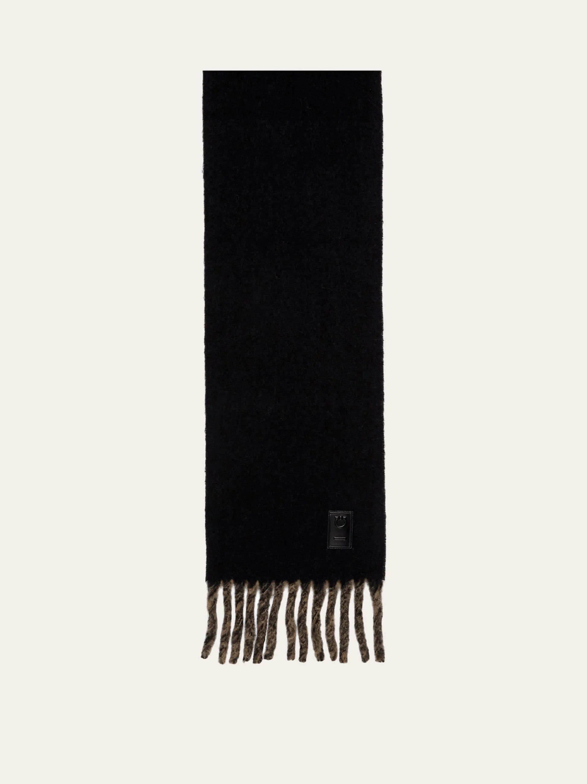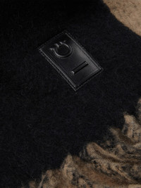 Warm, soft and chunky, this alpaca-blend scarf plays around with texture and color blocking to offer a decidedly contemporary aesthetic. Featuring a leather tag with embossed Gancini accent, it is finished off with braided fringing on the hem. - length 96.4 IN width 11.0 IN - Composition: 50% alpaca, 30% wool, 20% polyamide - Made in ITALY - Product code: 320789 770182