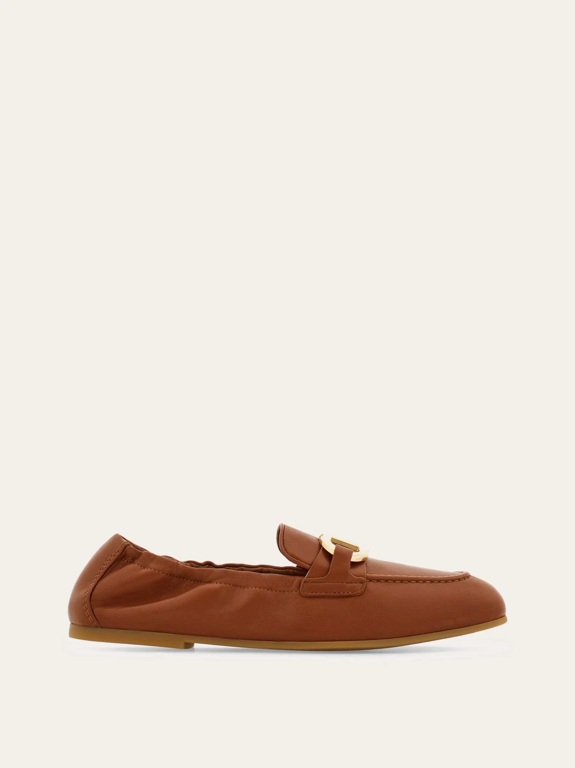 Cut from the smoothest nappa leather with a buttery feel, this elasticated slip on has the style and grit of a loafer with the laid back feel of a ballet flat. The result is a contemporary slipper that fits like a glove. Her uptown attitude is echoed by the raised stitching around the almond tip and golden Gancio bit across the instep, while the padded leather sole and elasticated trim ensure all-day comfort. - Composition: nappa - Made in ITALY - Product code: 01J573 779665